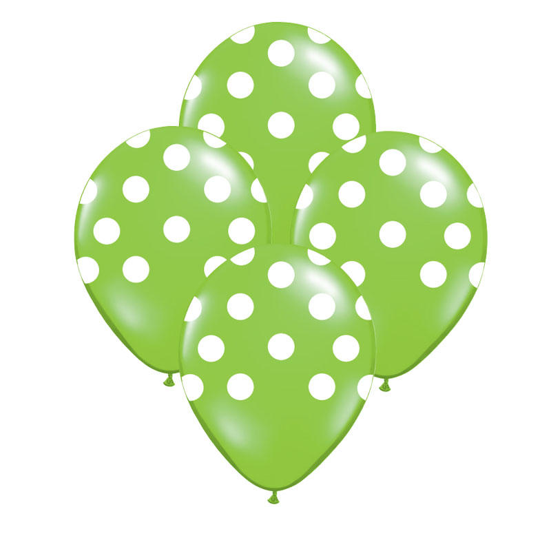Globos Estampados Lunares Blancos Color VERDE MANZANA 12 Pulgadas X10 Unidades
