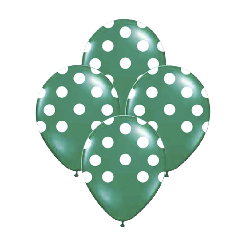Globos Estampados Lunares Blancos Color VERDE OSCURO 12 Pulgadas X10 Unidades