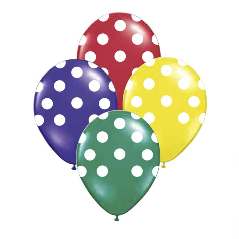 Globos Estampados Lunares Blancos Colores SURTIDOS 12 Pulgadas X10 Unidades Multicolor