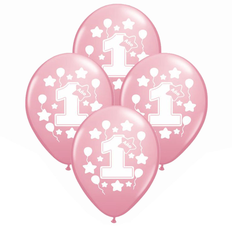 Globos Estampados 1er año añito Nena Rosa 12 Pulgadas X10 Unidades