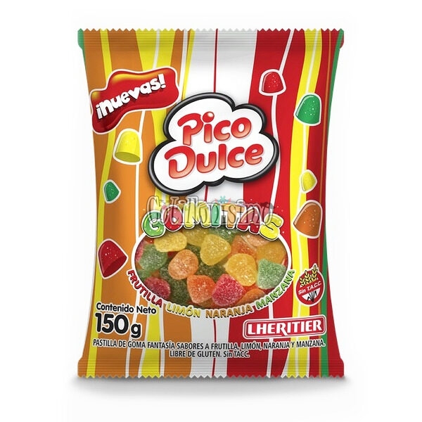 Gomitas PICO DULCE 150 Grs Sabor Frutilla – Limón – Naranja – Manzana Contiene aproximadamente 60 Unidades