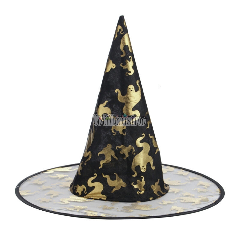 Gorro Bruja Negro con Fantasmas Dorados y Plateados – BEATRIX