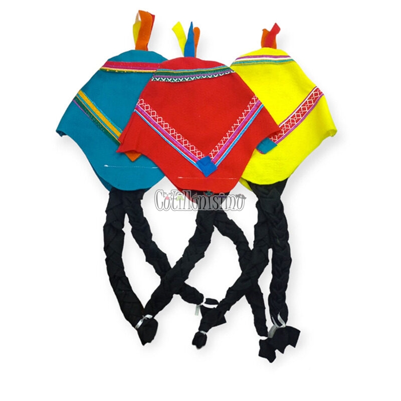 Gorro de Coya Mujer – Nena – Chica – Trenzas Negras – Colores Surtidos x1 Unidad – Crosti El color se entrega de forma surtida según disponibilidad del stock Medidas aproximadas: 54 cm x 29 cm Talle Unico