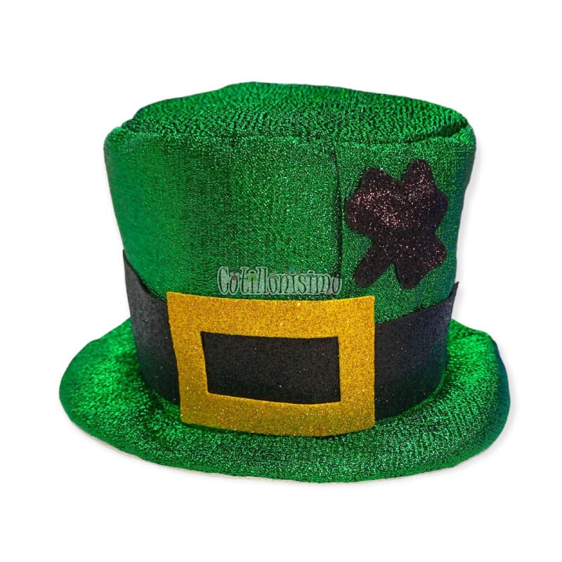 Gorro Galera Verde con Trebol San Patricio Lamé Con Cinturon – Hebilla Medidas Aproximadas: 15 cm de alto x 19 cm de diametro