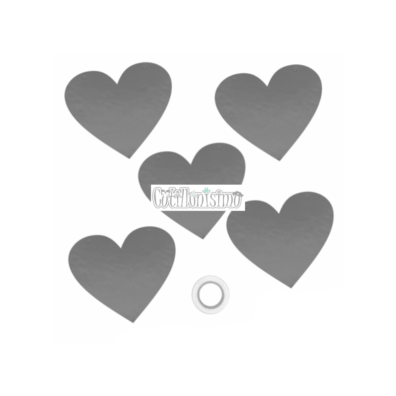 Guirnalda Corazones Plateados Metalizados x3 mts cantidad
