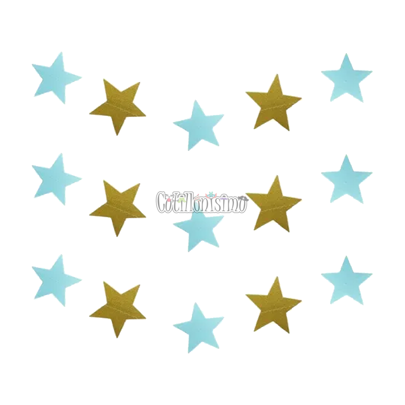 Guirnalda Estrella Celeste y Dorada 3 metros Medida aproximada de cada estrella: 7 cm