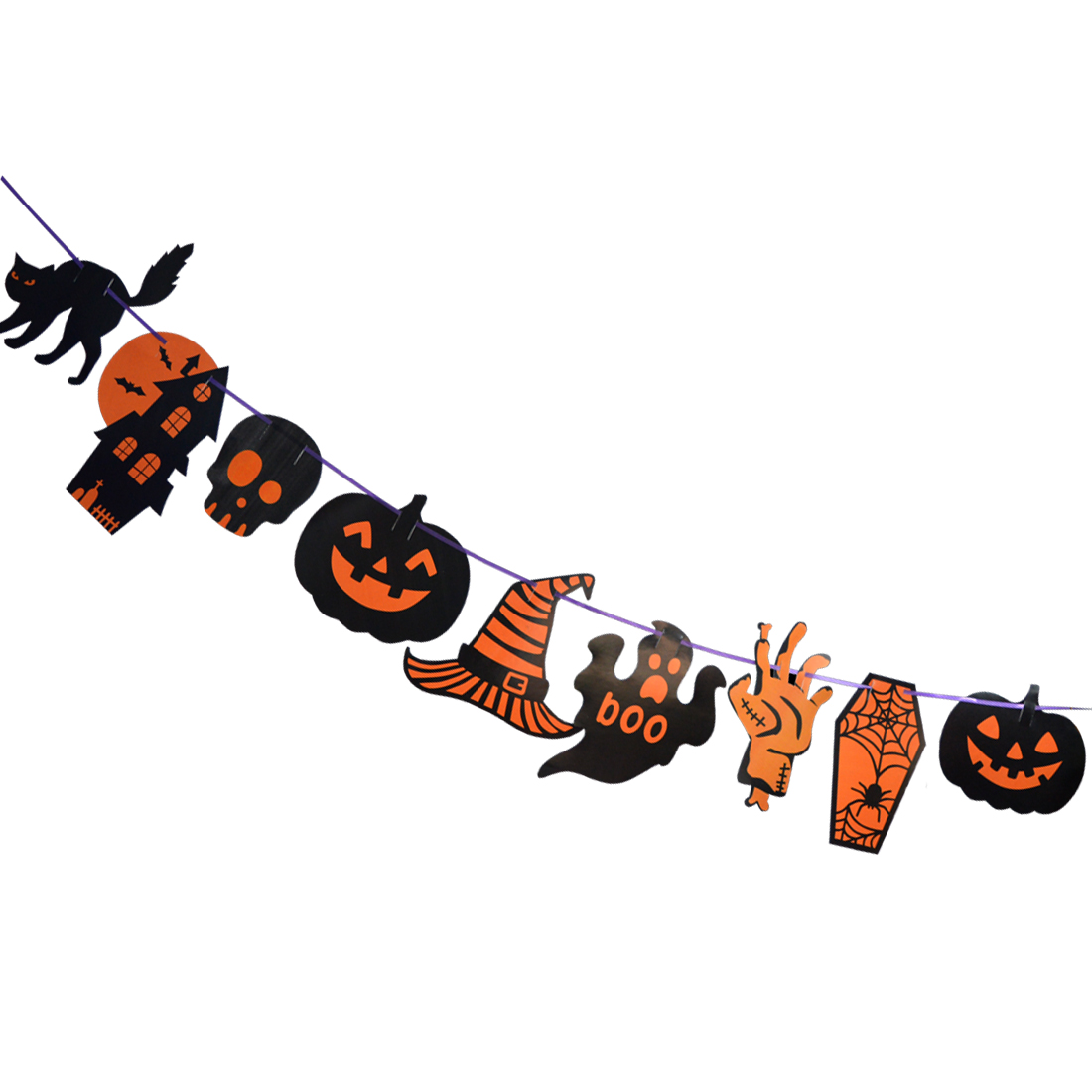 Siluetas de Halloween Gato Casa Embrujada Calavera Calabaza Fantasma Ataud Bruja Mano de Cartulina para Guirnalda / Colgar color Negro y Naranja Halloween