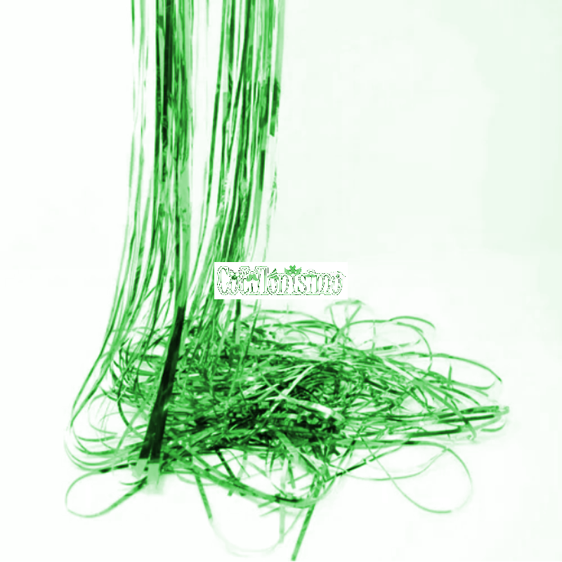 Lluvia Metalizada Verde Ondulada Navideña 15cm x 1mts cantidad