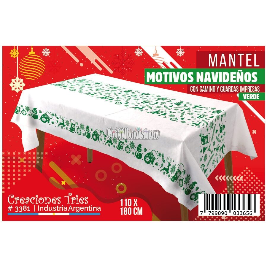 Mantel Blanco con MOTIVOS NAVIDEÑOS Verdes Impreso (FRISELINA)