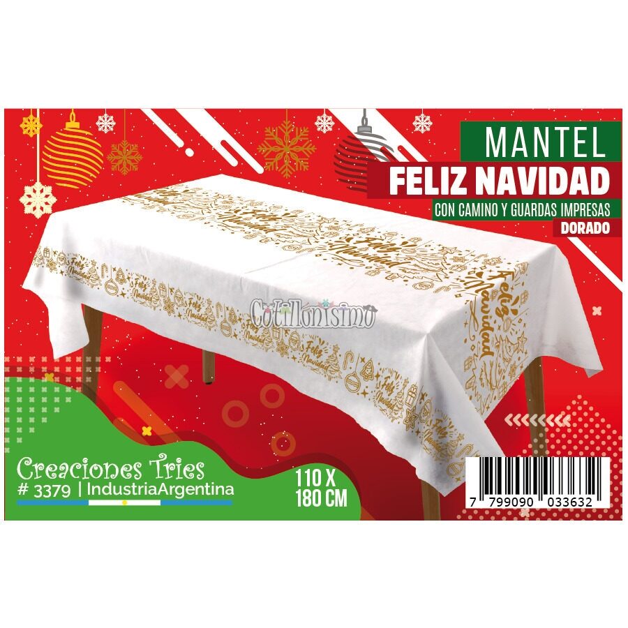 Mantel Blanco FELIZ NAVIDAD Dorado Impreso (FRISELINA)