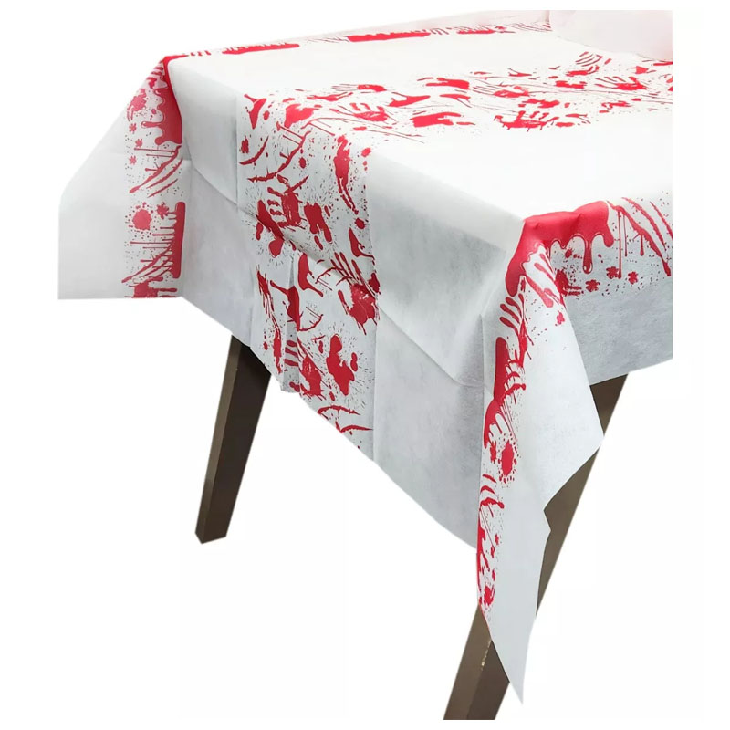 Mantel Rectangular Tematico Sangre (FRISELINA) Halloween Tamaño 1,20 X 1,80 Mts Color Blanco y Rojo Material Friselina