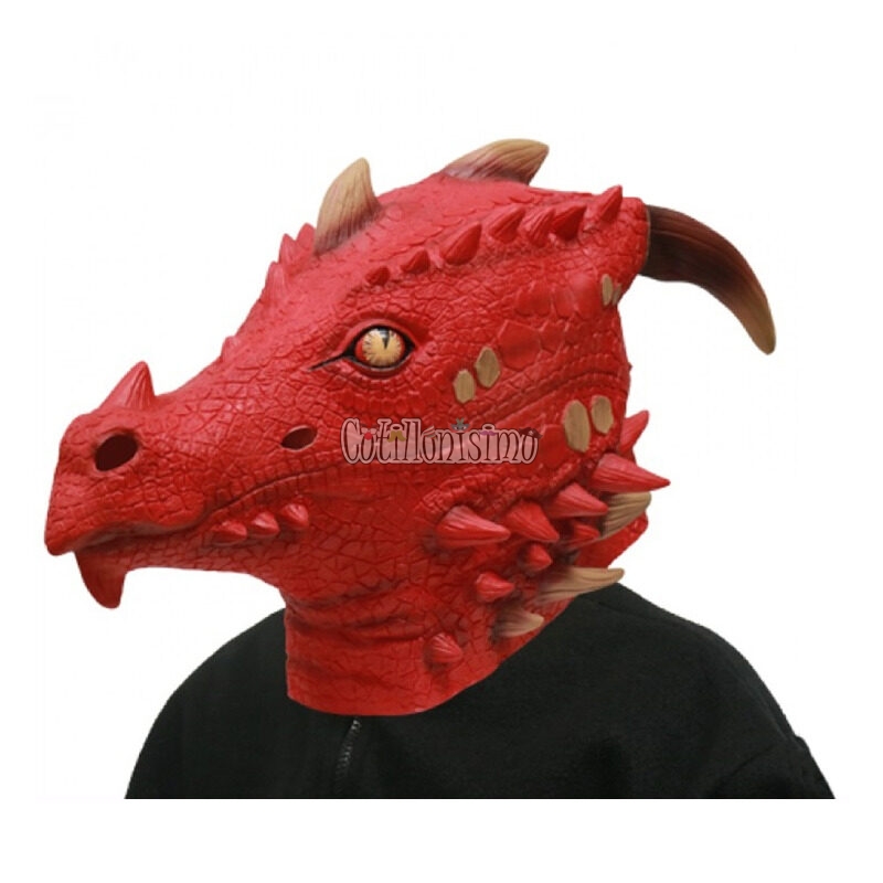 Mascara Latex – Goma Dragon Rojo con Cuernos Talle Unico