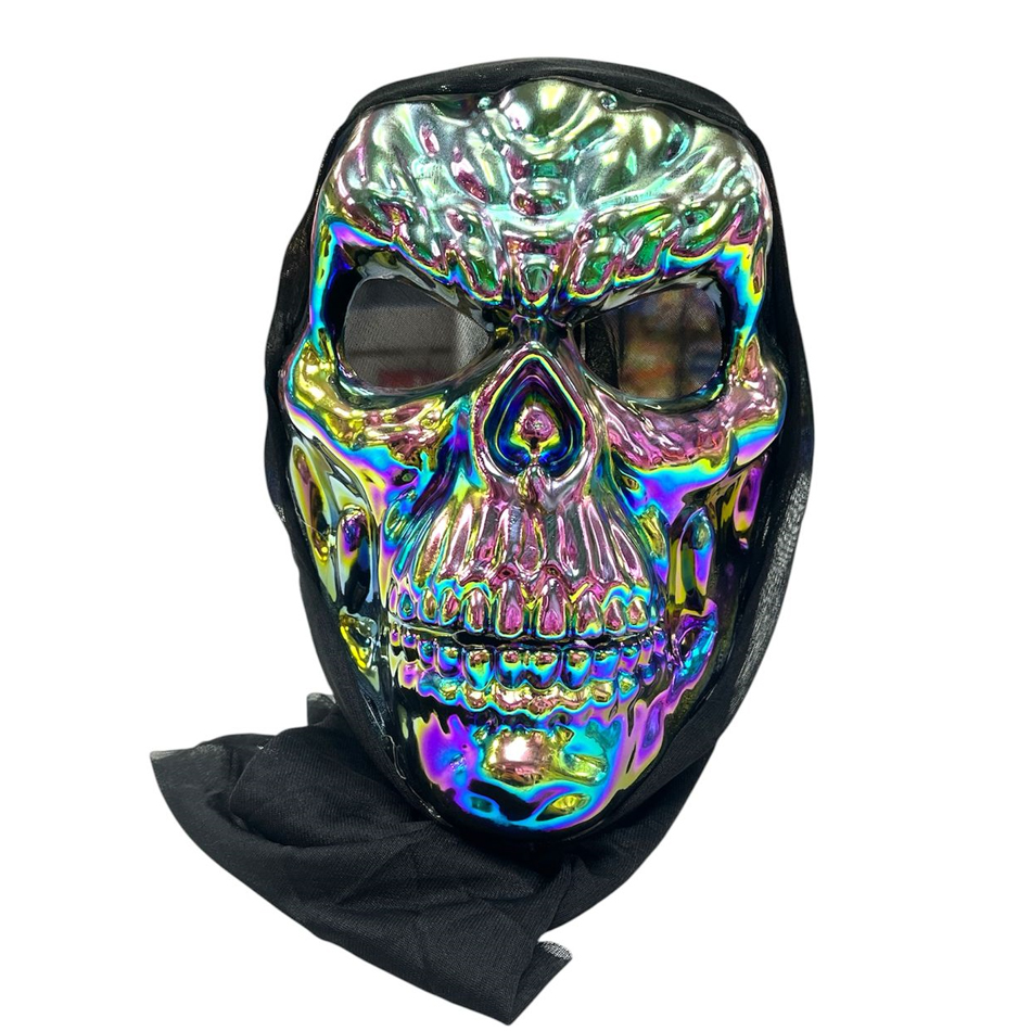 Mascara Rigida Careta Craneo Esqueleto Demonio Tornasolado con Capucha Negra
