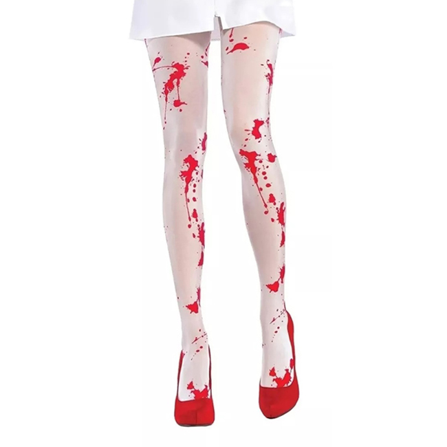 Media Bucanera 7/8 Sangrientas Blancas con manchas rojas de Sangre Halloween 68cm 68 cm de largo aproximadamente