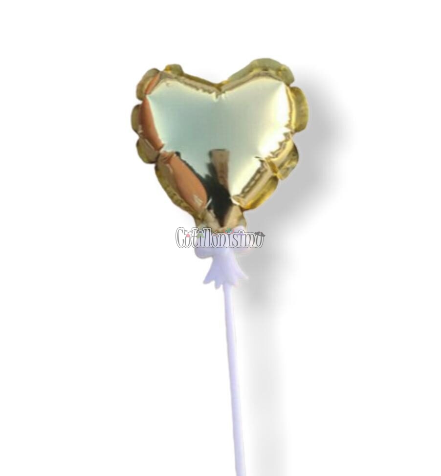 Mini Globo Forma “Corazon” Inflado Automatico “Dorado” Material: Foil Metalizado Color Dorado Incluye Palito Porta Globo