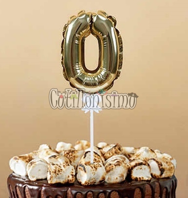 Mini Globo Numero “0” Inflado Automatico “Dorado” Material: Foil Metalizado Color Dorado Numero: “0” Incluye Palito Porta Globo