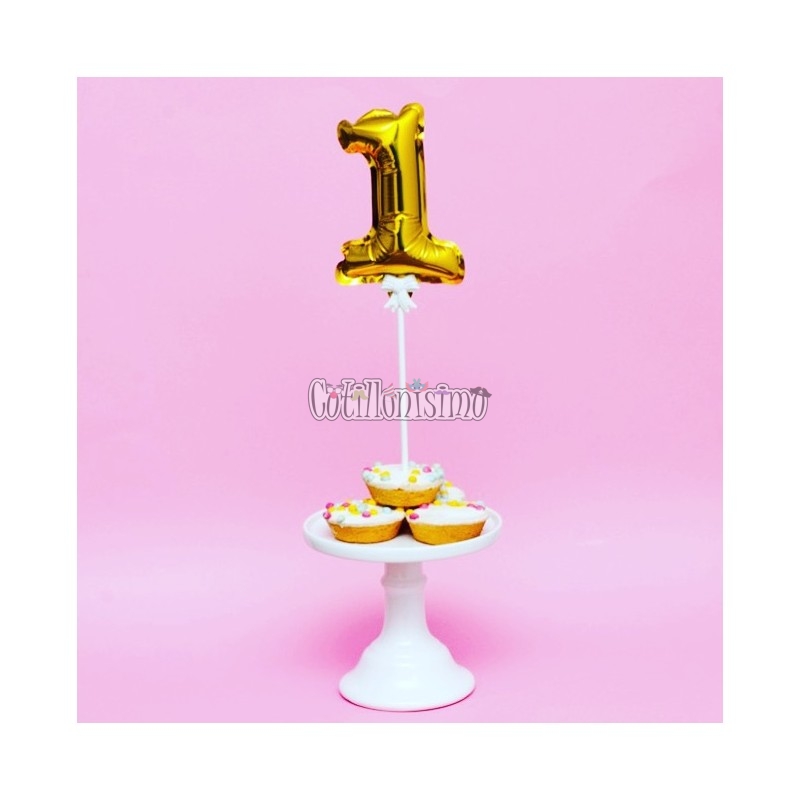 Mini Globo Numero “1” Inflado Automatico “Dorado” Material: Foil Metalizado Color Dorado Numero: “1” Incluye Palito Porta Globo