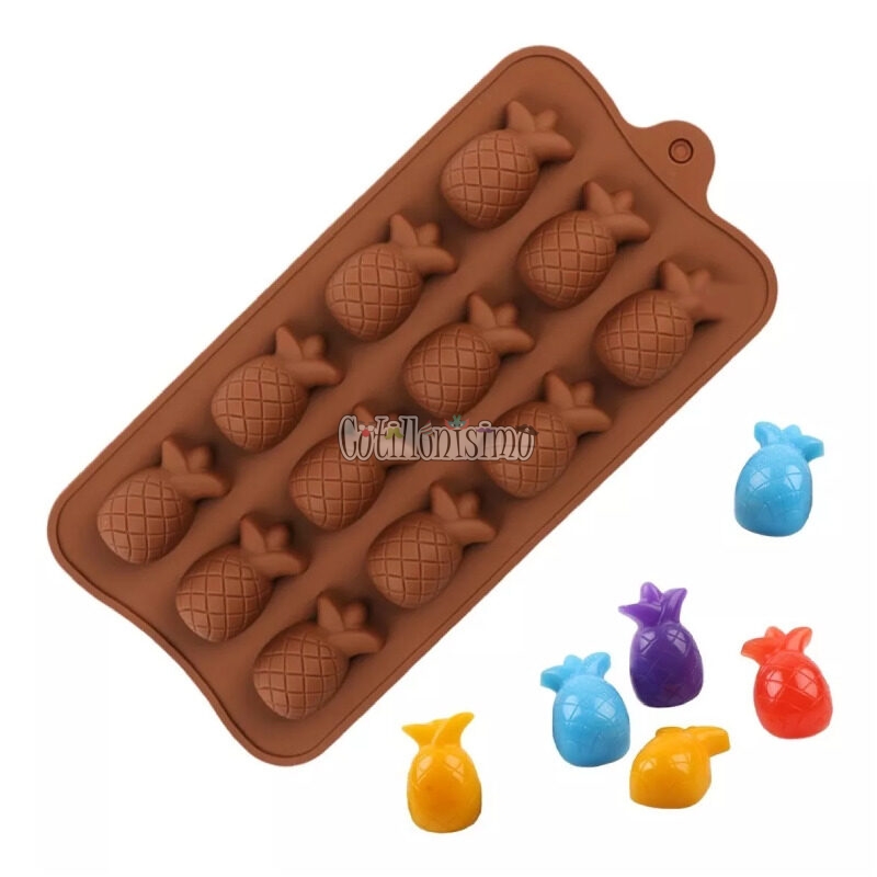Molde de Silicona Bombones de Ananas Medidas aproximadas: 20 cm x 10 cm Total – 4 cm x 2 cm Piñas El color se entrega según disponibilidad del stock