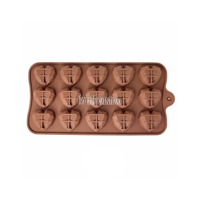 Molde de Silicona Corazon Facetado Chico Medidas aproximadas: 20 cm x 11 cm Total – 3 cm x 3 cm Corazones El color se entrega según disponibilidad del stock