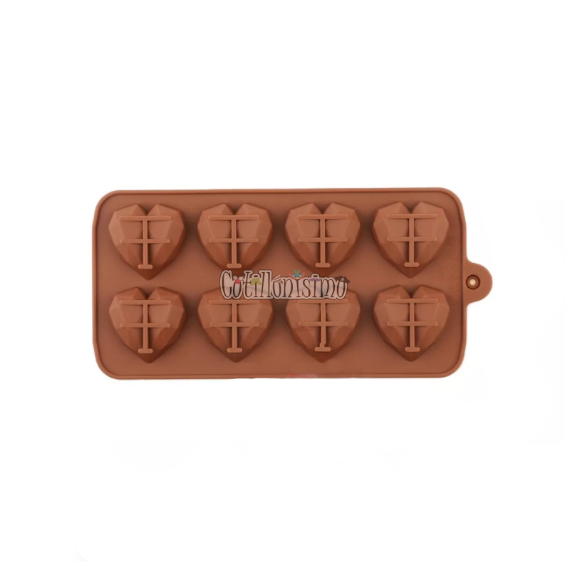 Molde de Silicona Corazón Facetado Medidas aproximadas: 20 cm x 11 cm Total – 4 cm x 4 cm Corazones El color se entrega según disponibilidad del stock