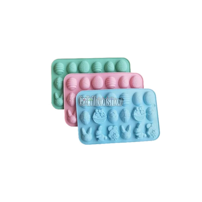 Molde de Silicona Huevos y Conejo bomboncitos chocolate Pascua Medidas aproximadas: 13 x 18cm Total – 3 cm x 3 cm El color se entrega según disponibilidad del stock
