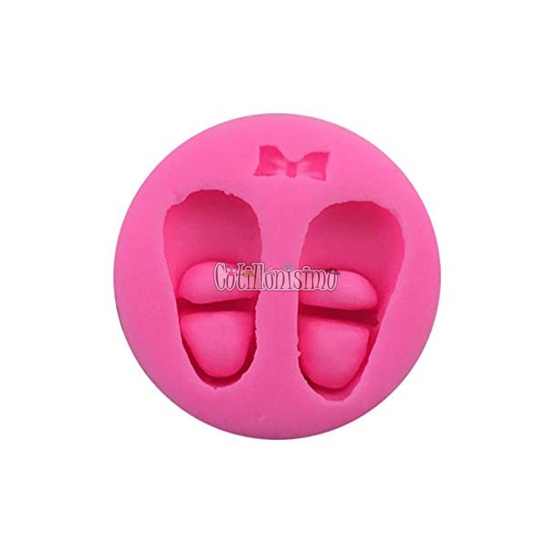 Molde de Silicona Zapatos de Bebe con Moño Medidas aproximadas: 6 cm x 1,5 cm – 3,5 cm x 1,5 cm (zapatito) El color se entrega según disponibilidad del stock