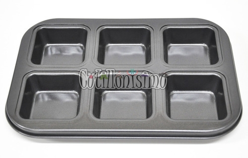 Molde de Teflon Cuadrado para 6 Unidades Material: Teflon Medida Total: 26 cm x 18 cm aprox. Cantidad: Para 6 unidades. Articulo de Reposteria ideal para llevar a cabo tus creaciones.