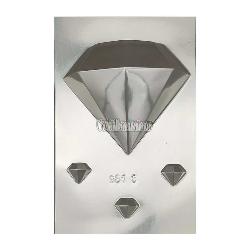 Molde Placa Acetato Facetado Diamante con 3 Diamante Chicos