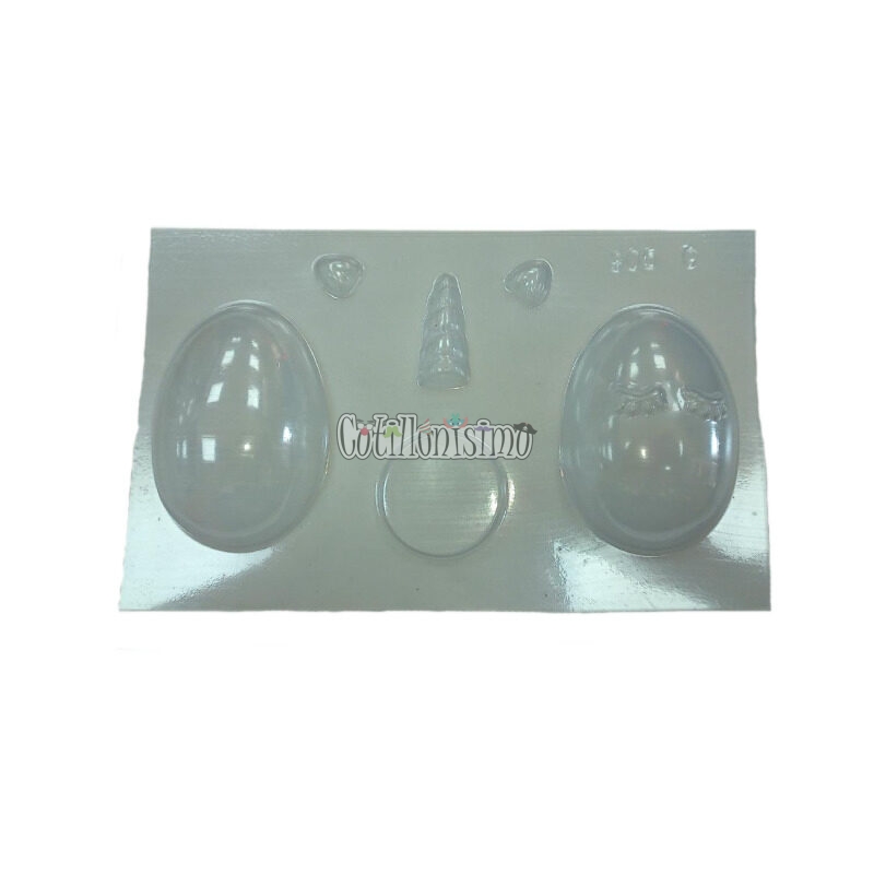 Molde Placa Acetato para Huevo Unicornio Pestañas, Orejas, Cuerno y Base Chocolate Pascua