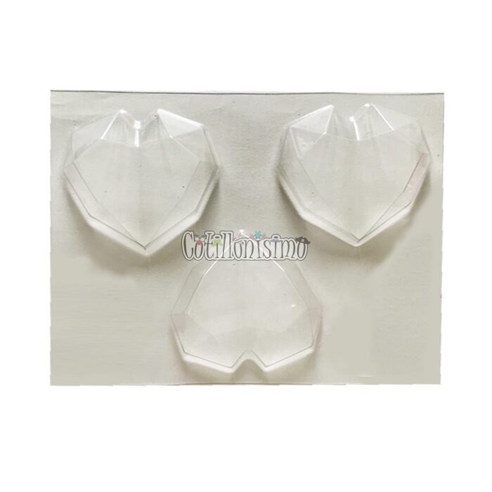 Molde Placa Acetato Corazones Facetados Estilo Diamante Medidas aproximadas: 7cm x 6cm cada corazón – 16,5cm x 13,5cm total molde
