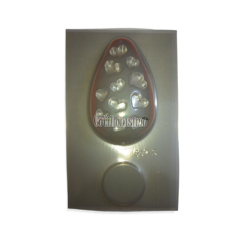 Molde Placa de Acetato Huevo de Pascua Corazones con Base Chocolate Medidas aproximadas: 16 x 26 cm Total Placa – 10 x 15 cm Total Huevo – 6 cm de Circunferencia de Base