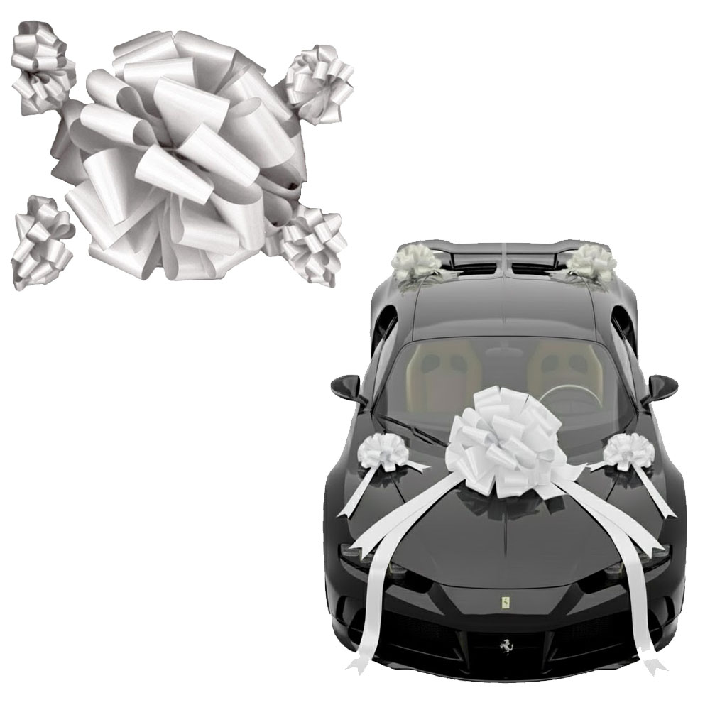 Incluye 4 moños pequeños de 15cm aproximadamente con su correspondiente cinta