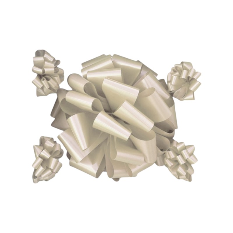 Incluye 4 moños pequeños de 15cm aproximadamente con su correspondiente cinta