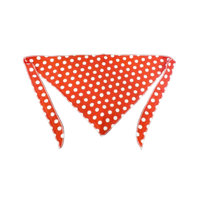 Pañuelo Negrita Tela x1u Color: Rojo con Lunares Blancos Material: Tela Medidas: 60cm de largo x 32cm de alto – Tiras para atar 18cm