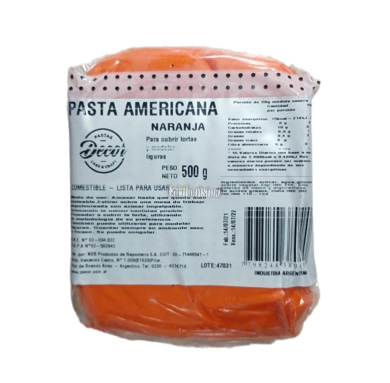 / Pasta Americana Decor Cake NARANJA x500 Gramos