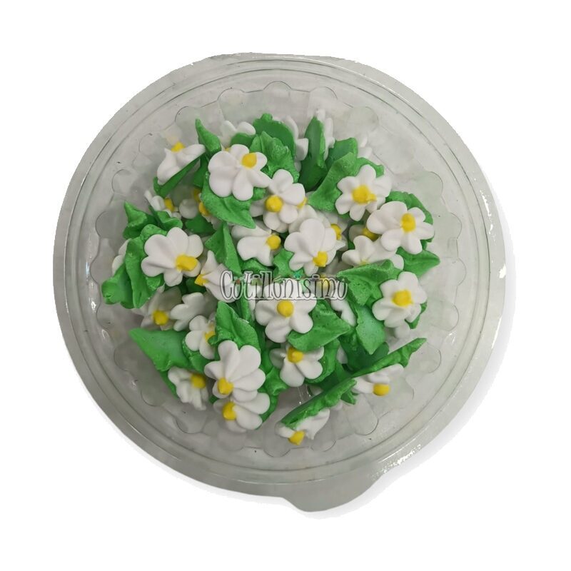 Pastillaje Azucar Flor Durazno Mediano con Hoja Blancas x50 Unidades