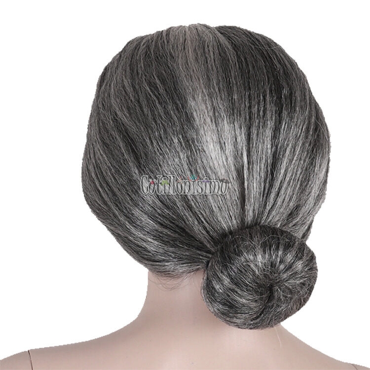 Peluca Estilo Abuela Vieja / Anciana con Rodete y Raya al medio Color: Canosa; Gris / Plateada / Blanca