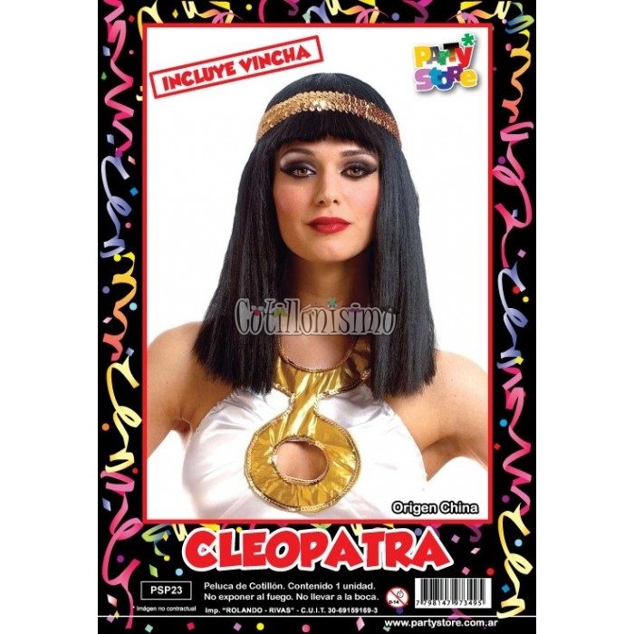 Peluca Larga Negra CLEOPATRA Egipto Egipcia Reina Faraon Disfraz Halloween con Vincha