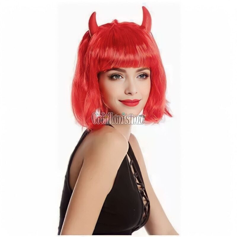 Peluca Corta Roja Diablita con Cuernos cantidad