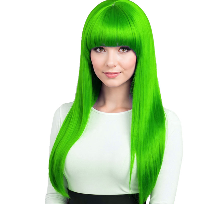 Peluca Lacia Larga Verde Color: Verde Medida aproximada: 50 cm largo El color puede ser similar a la foto