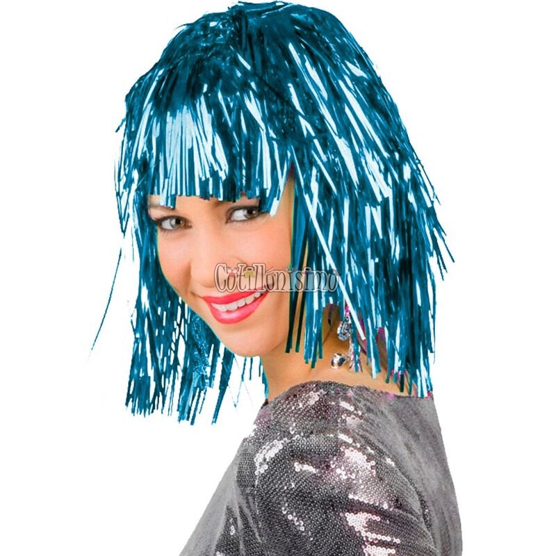 Peluca Lisa Metalizada Celeste Talle Unico El color puede variar levemente