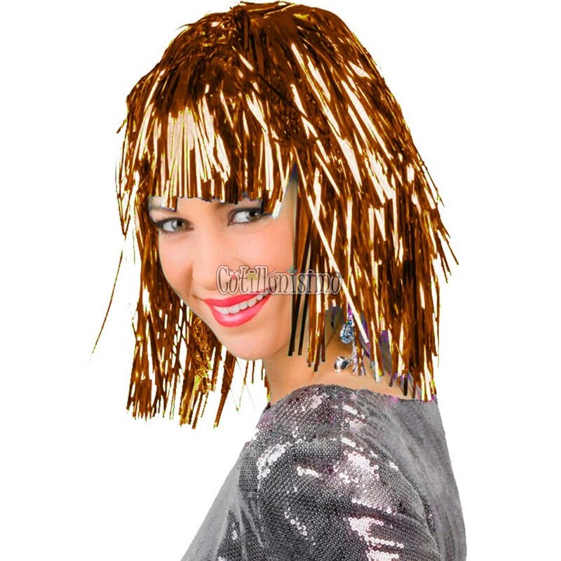 Peluca Lisa Metalizada Naranja Talle Unico El color puede variar levemente