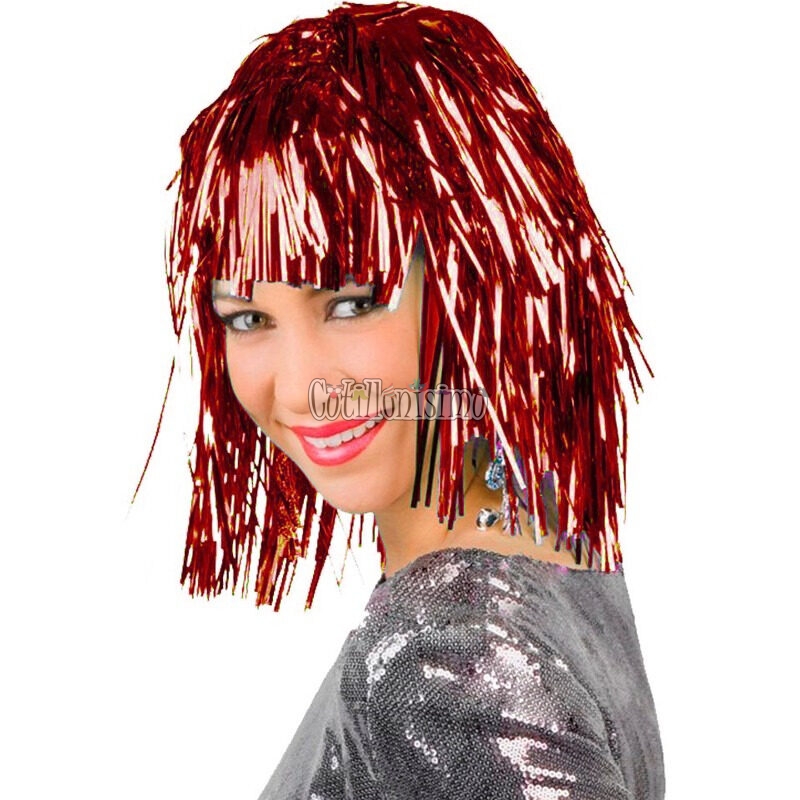 Peluca Lisa Metalizada Roja Talle Unico El color puede variar levemente