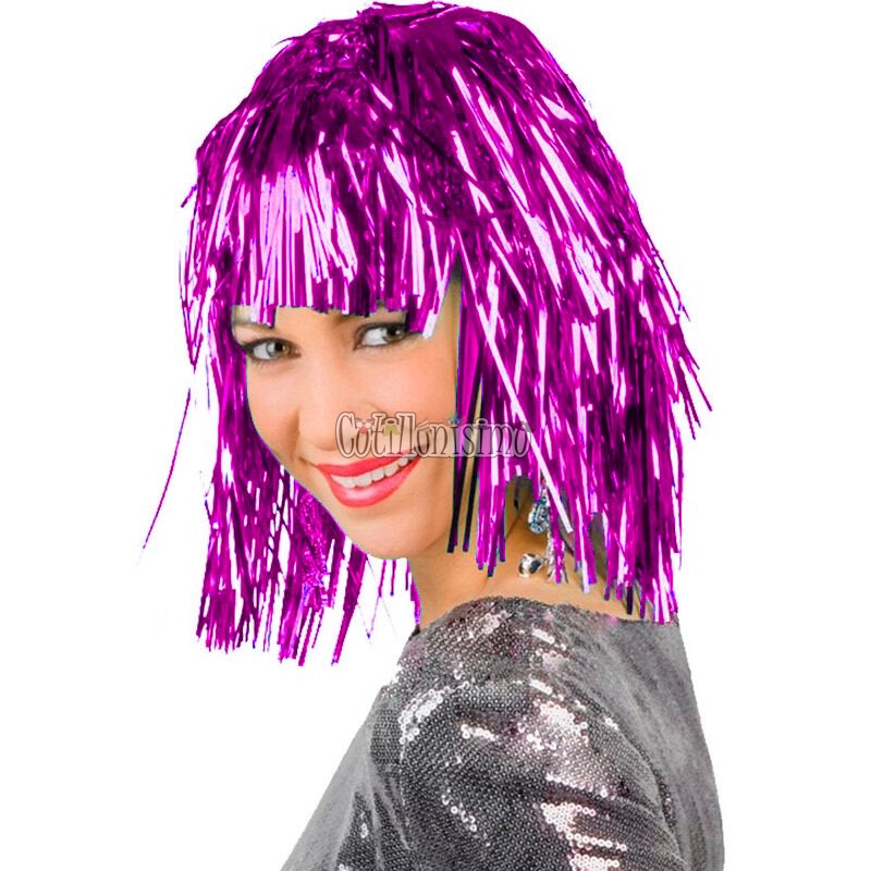 Peluca Lisa Metalizada Rosa / Fucsia Talle Unico El color puede variar levemente