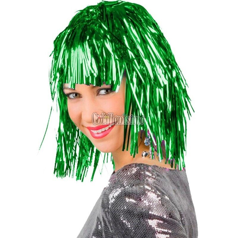 Peluca Lisa Metalizada Verde Talle Unico El color puede variar levemente