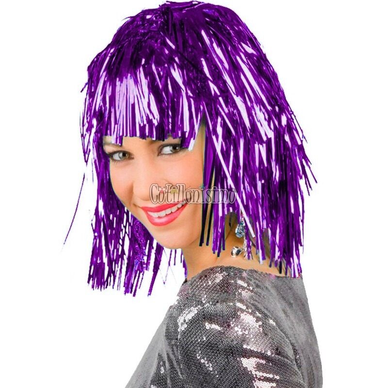 Peluca Lisa Metalizada Violeta Talle Unico El color puede variar levemente