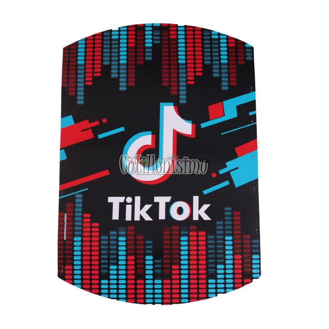 Piñata Tik Tok de Carton Licencia Oficial Material: Carton Medidas: 52 x 36cm por 7,5cm de Ancho aprox. Colores: Negro, Fucsia y Celeste