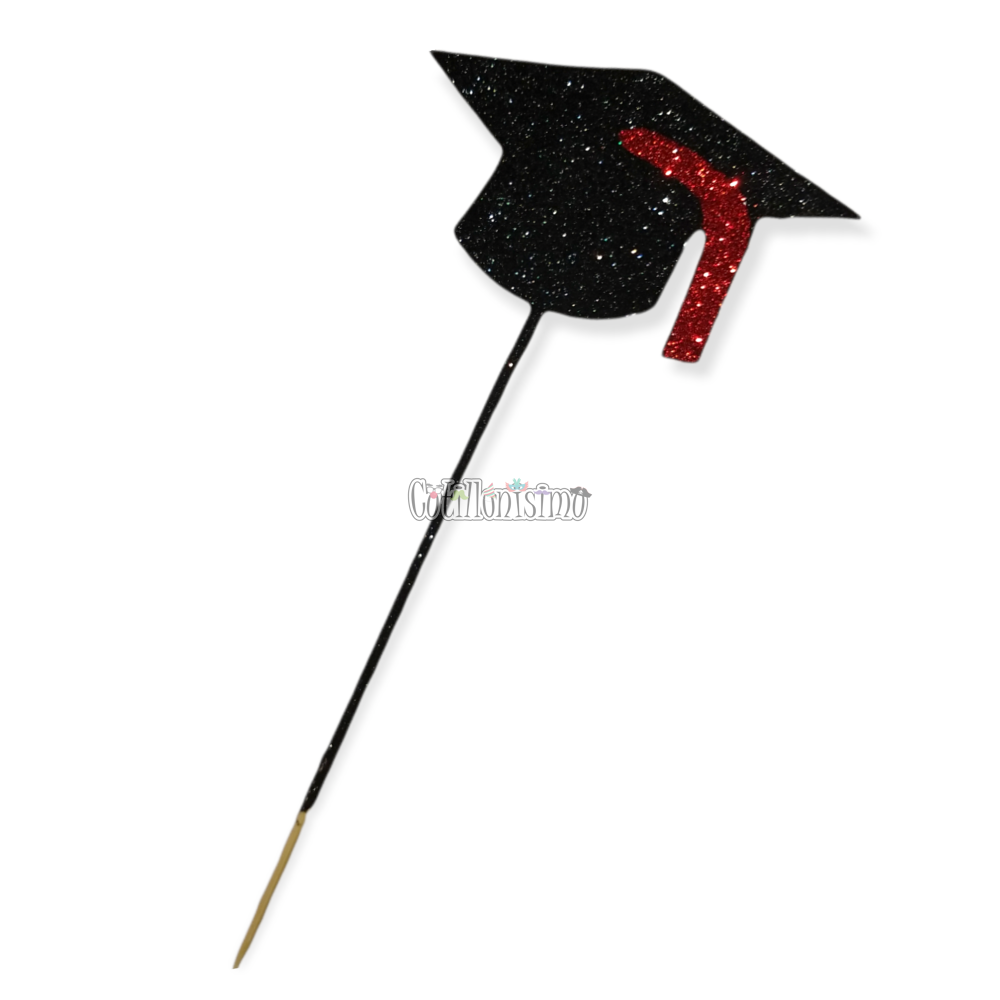 Pinche de Sombrero / Gorro Egresado Gibreado Color Negro con Birrete Rojo