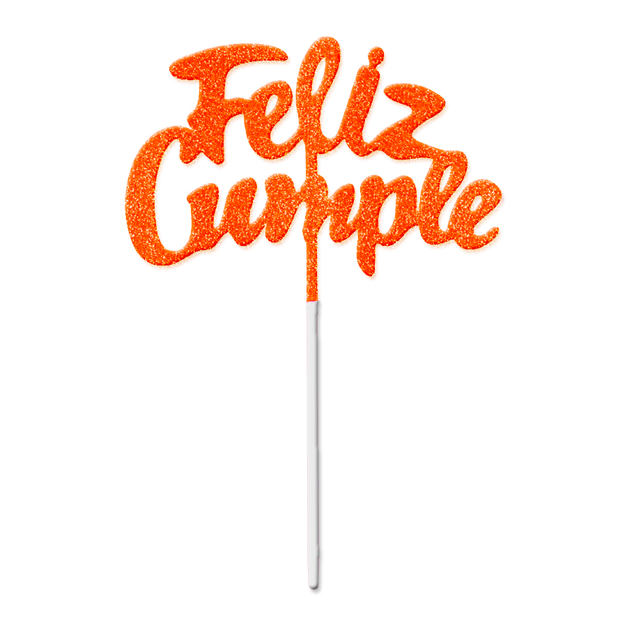 Topper Pinche Feliz Cumpleaños Anaranjado con Gibre Brillos Plástico 22cm Medidas aproximadas: 22cm x 14.5cm