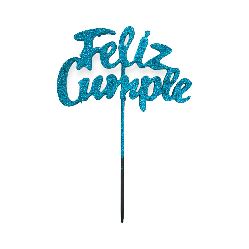 Topper Pinche Feliz Cumpleaños Celeste con Gibre Brillos Plástico 22cm Medidas aproximadas: 22cm x 14.5cm